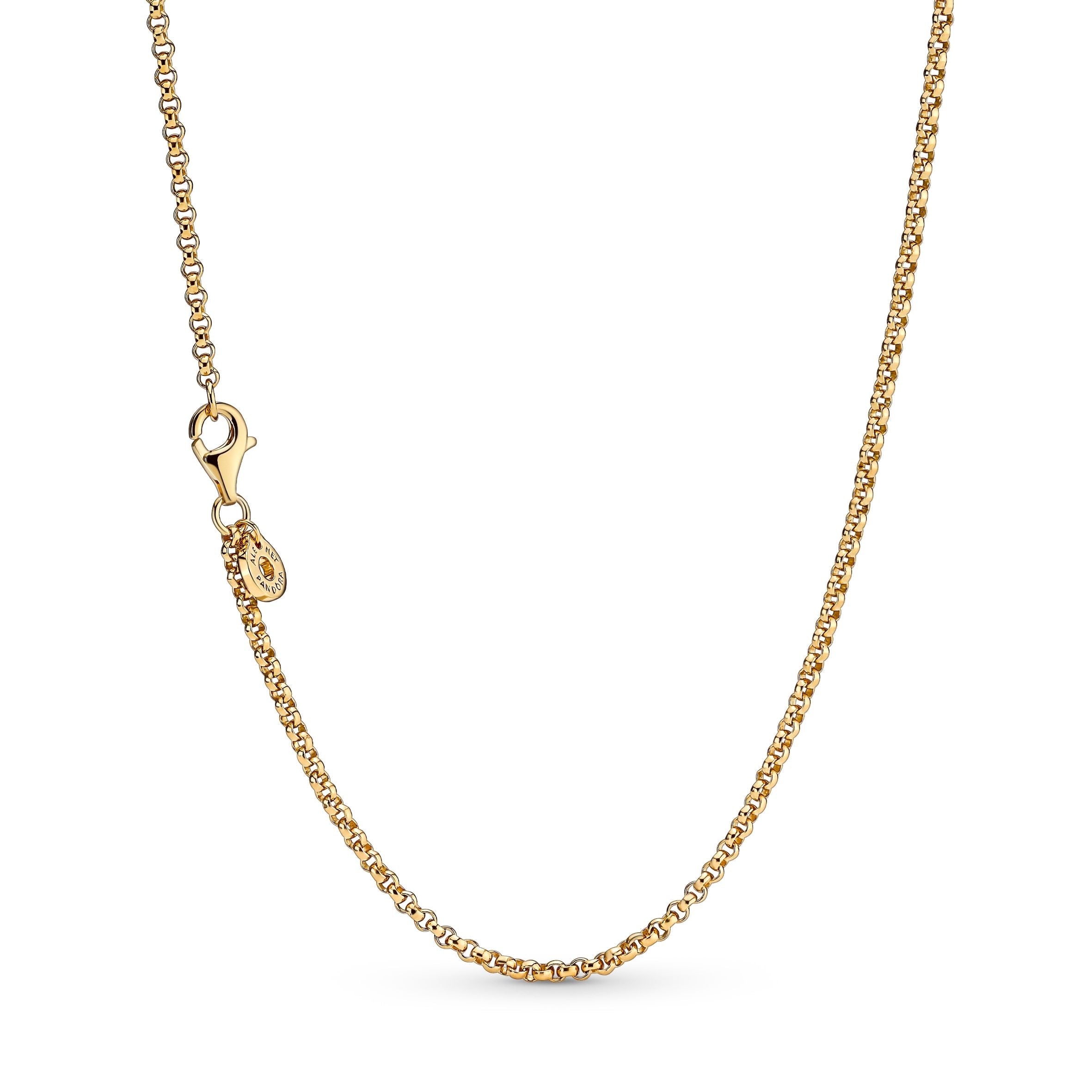 Enhance your neck with the Pandora belcher chain necklace, a timeless and refined piece. Made in Pandora Shine – an alloy covered with a gold plating 585/1000 (14 K) –, this necklace seduces with its classic belcher knit composed of rounded rings with a shiny finish.