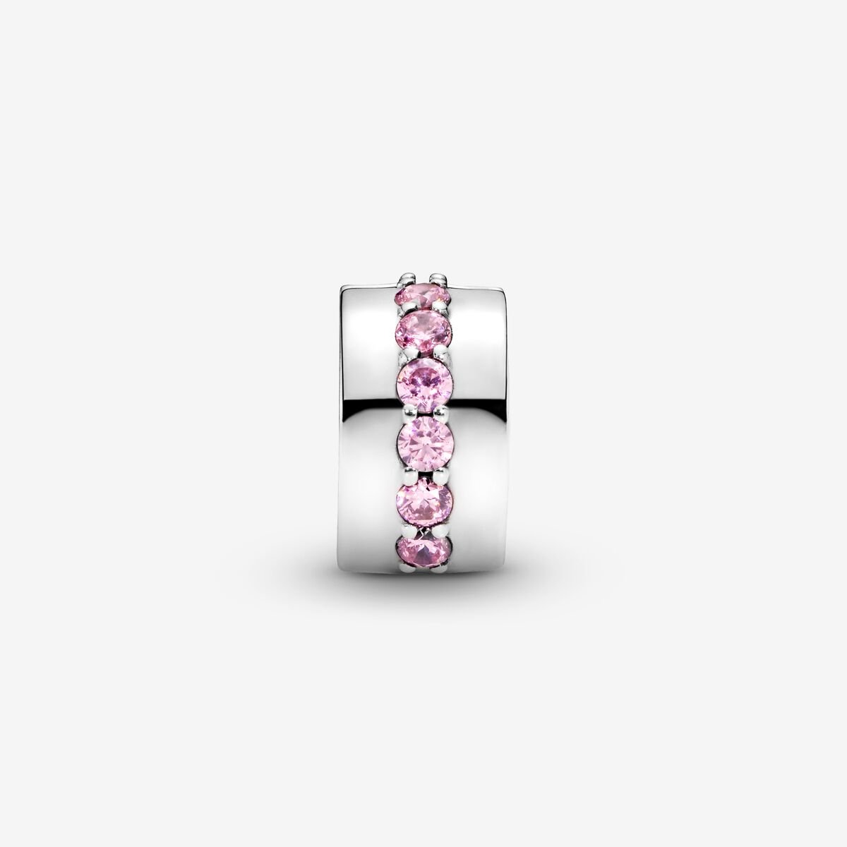 Bring a touch of softness and femininity to your bracelet with the Pandora Rose Sparkling Row Clip Charm. Made in 925/1000 silver, this refined charm is decorated with a row of sparkling pink cubic zirconia, carefully set to reflect light with each movement.